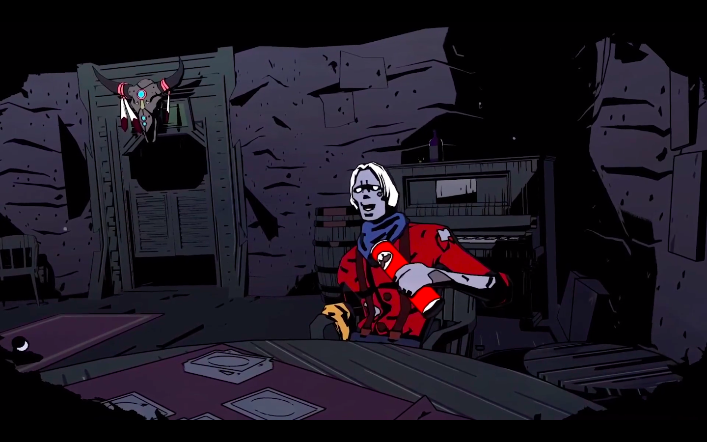 For the first time in gaming culture, the 5th wall was broken. The living-human-flesh eater Frank escaped from the gaming world and, after trying Pringles for the first time, was reintroduced to the game in a much friendlier version. If you play West of Dead on any platform today or in 40 years you or your grandchildren will meet Frank there.